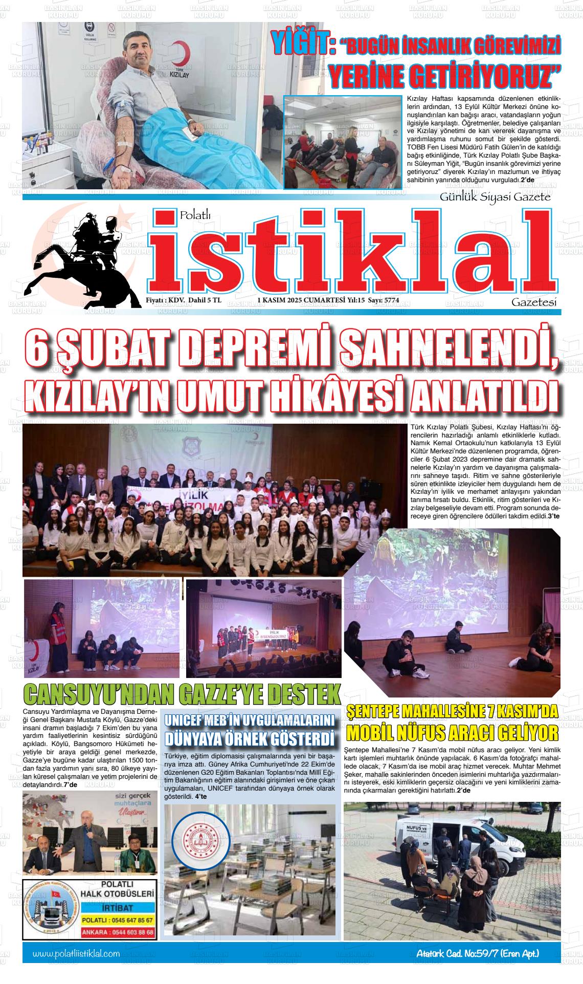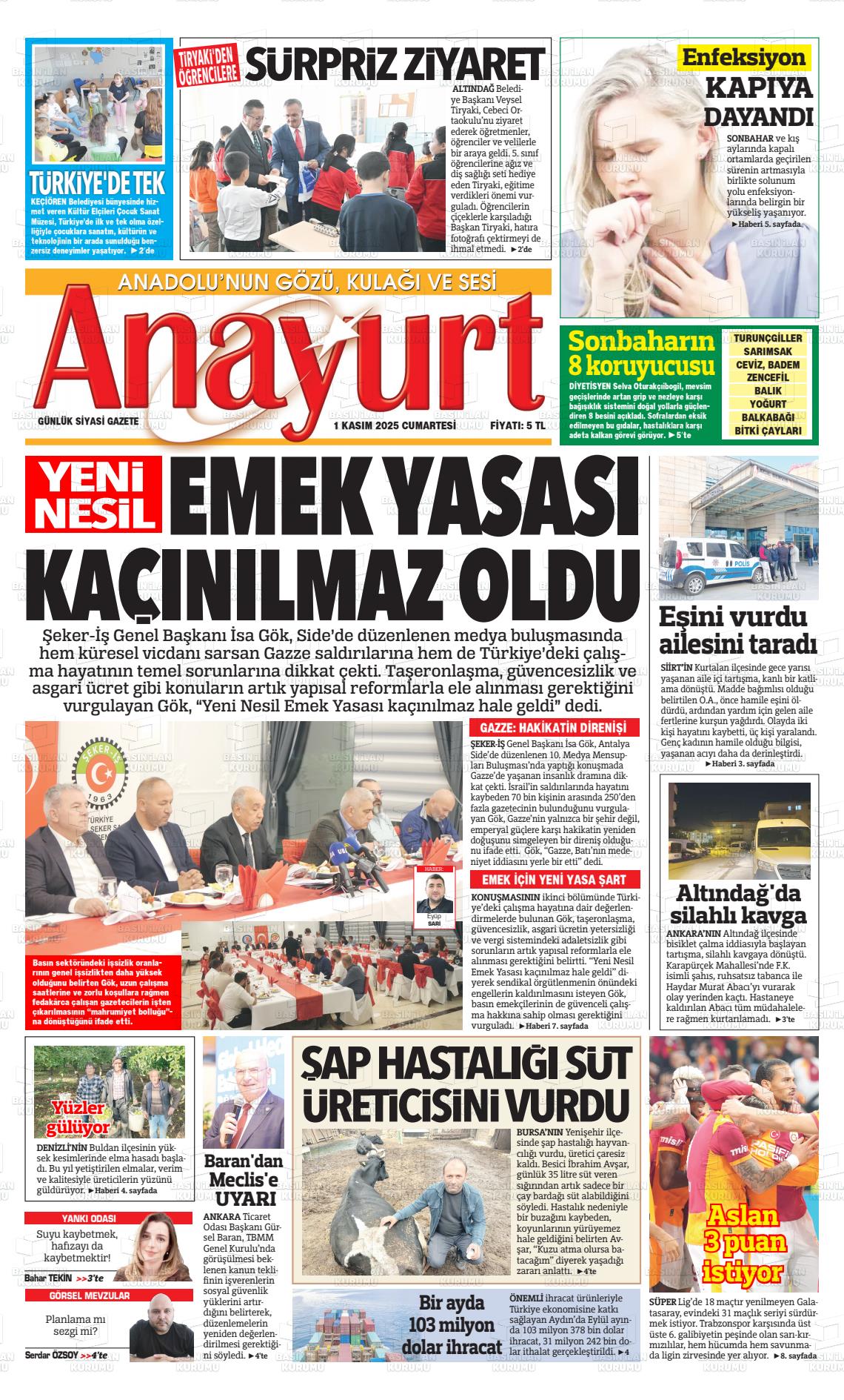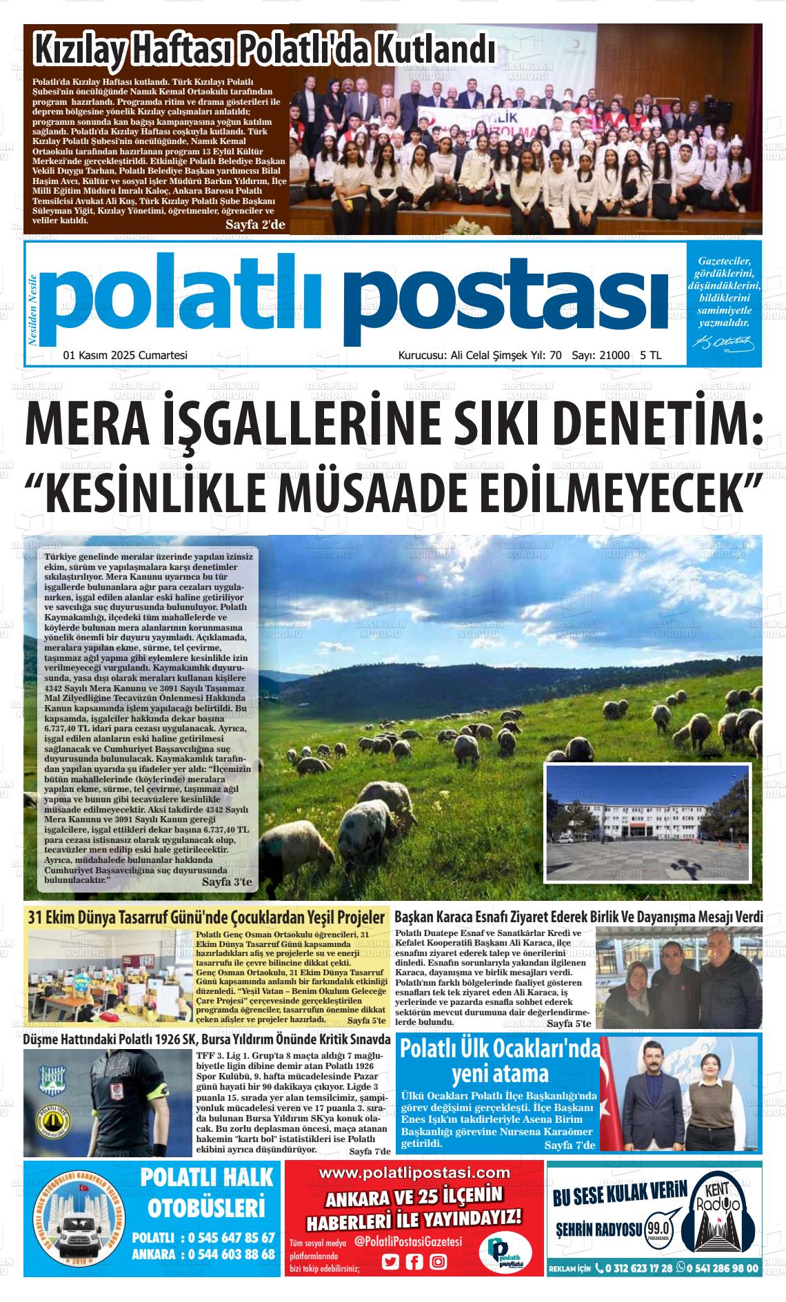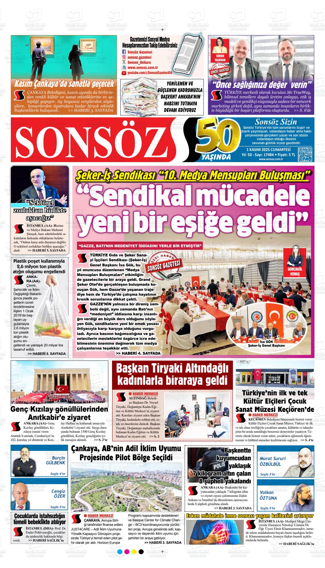 Ankara Yerel Gazeteleri 01 Kasım 2025, Cumartesi Günü Manşeti