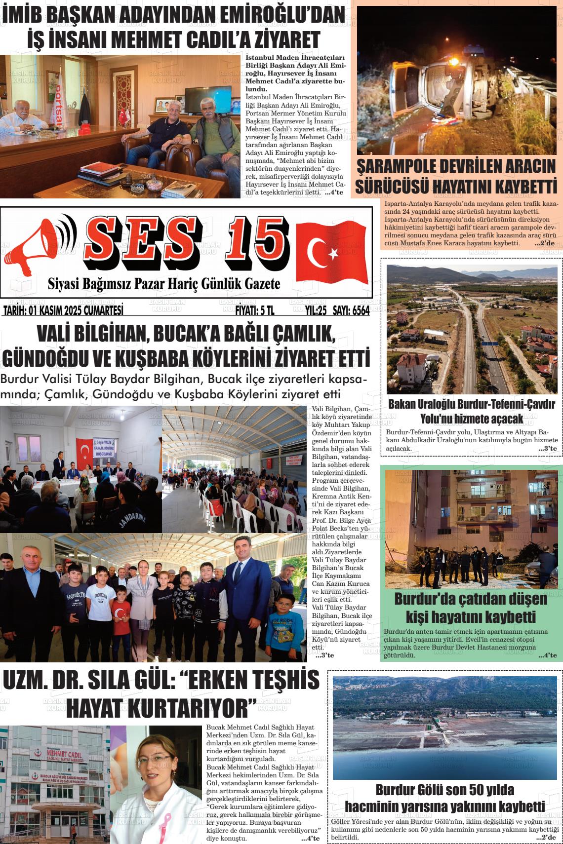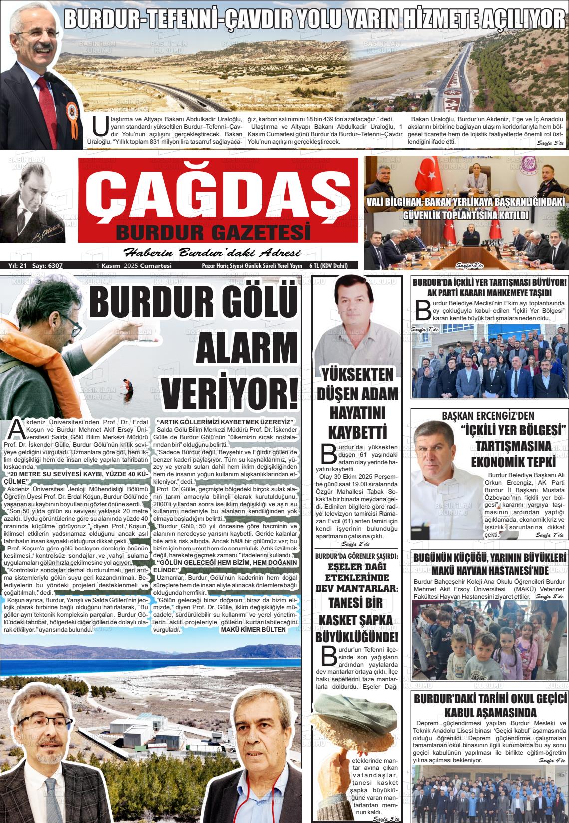 Burdur Yerel Gazeteleri 01 Kasım 2025, Cumartesi Günü Manşeti