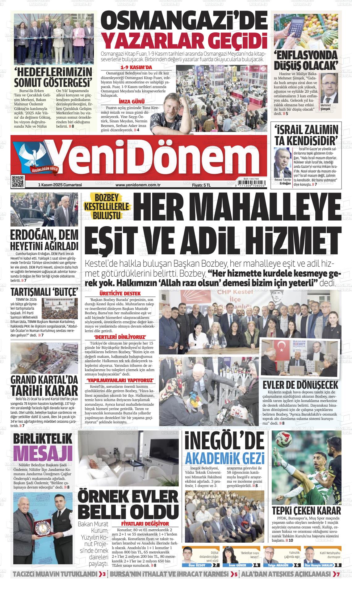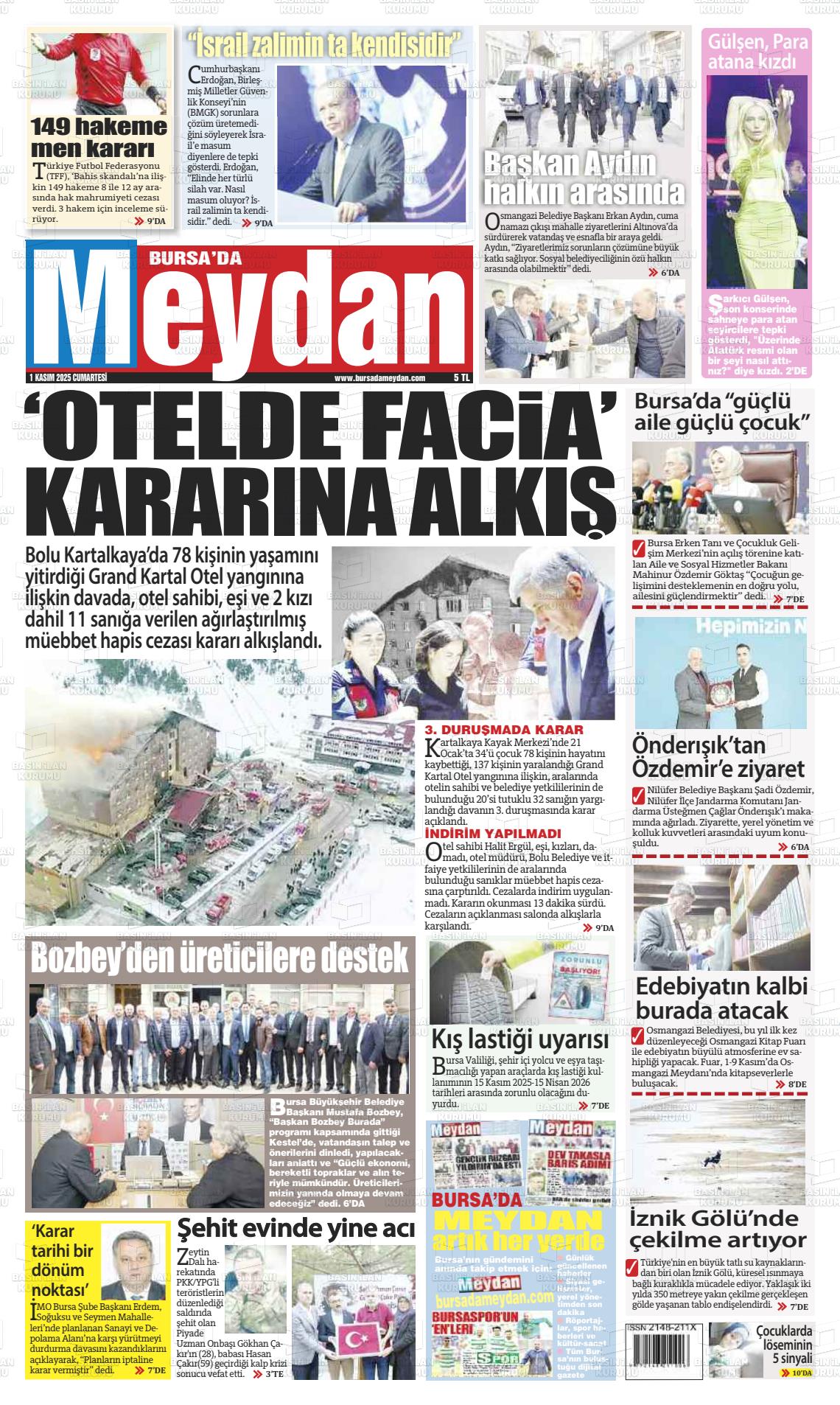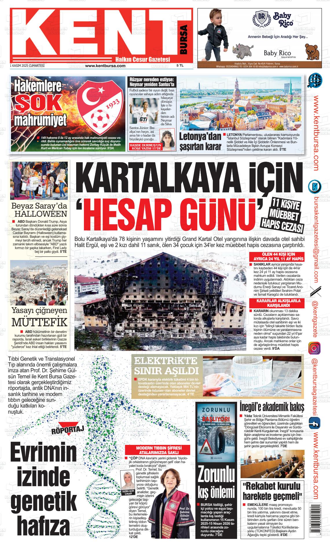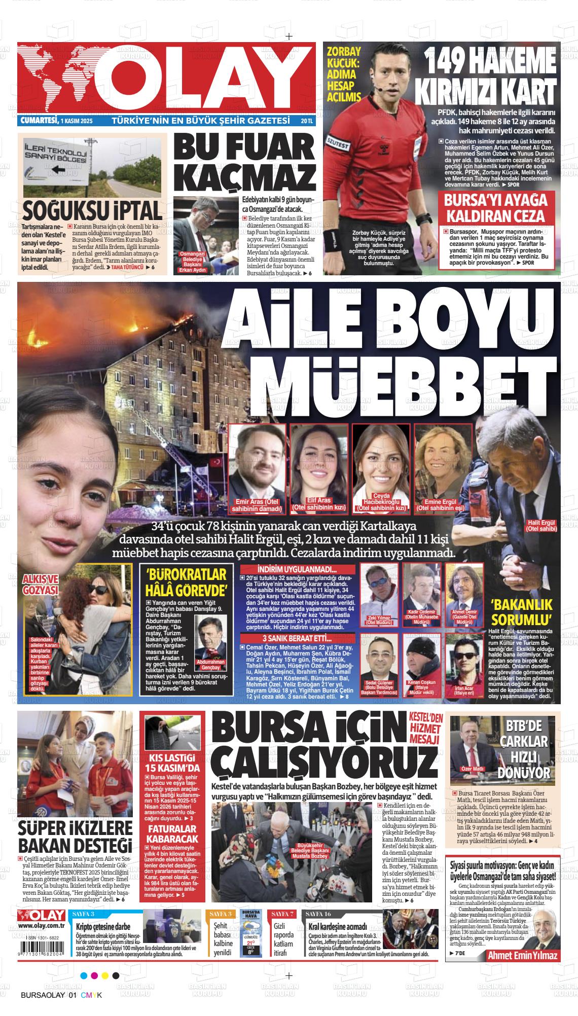 Bursa Yerel Gazeteleri 01 Kasım 2025, Cumartesi Günü Manşeti