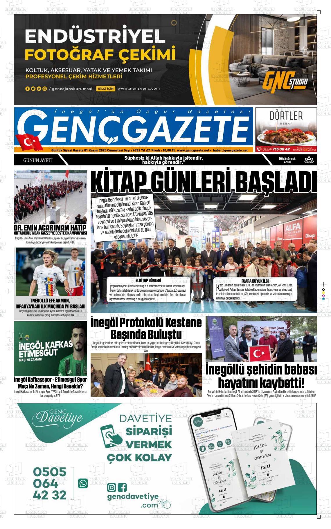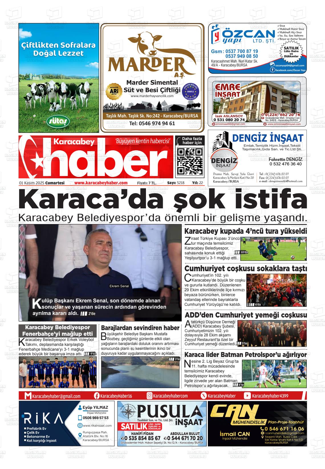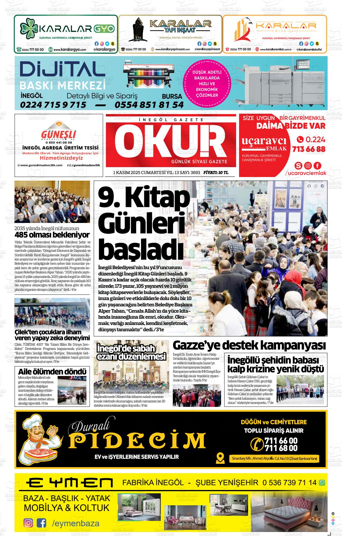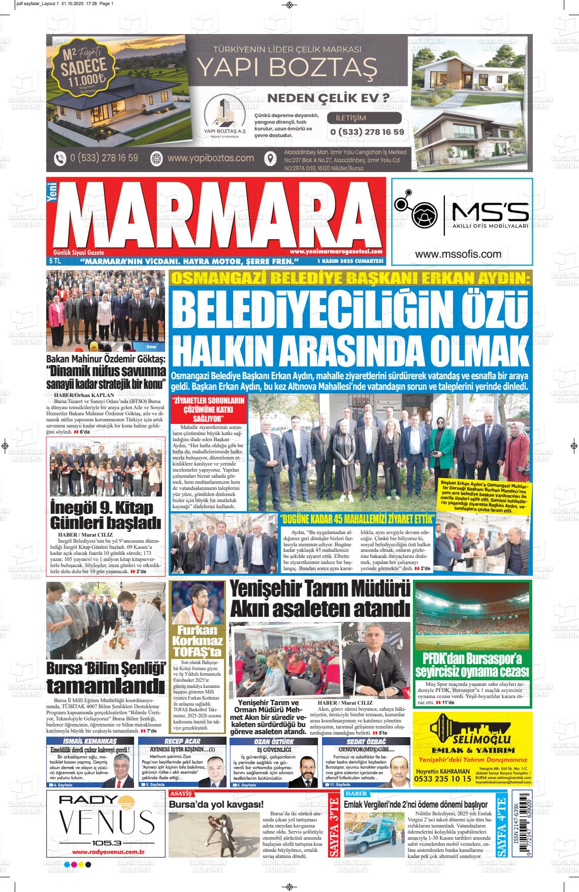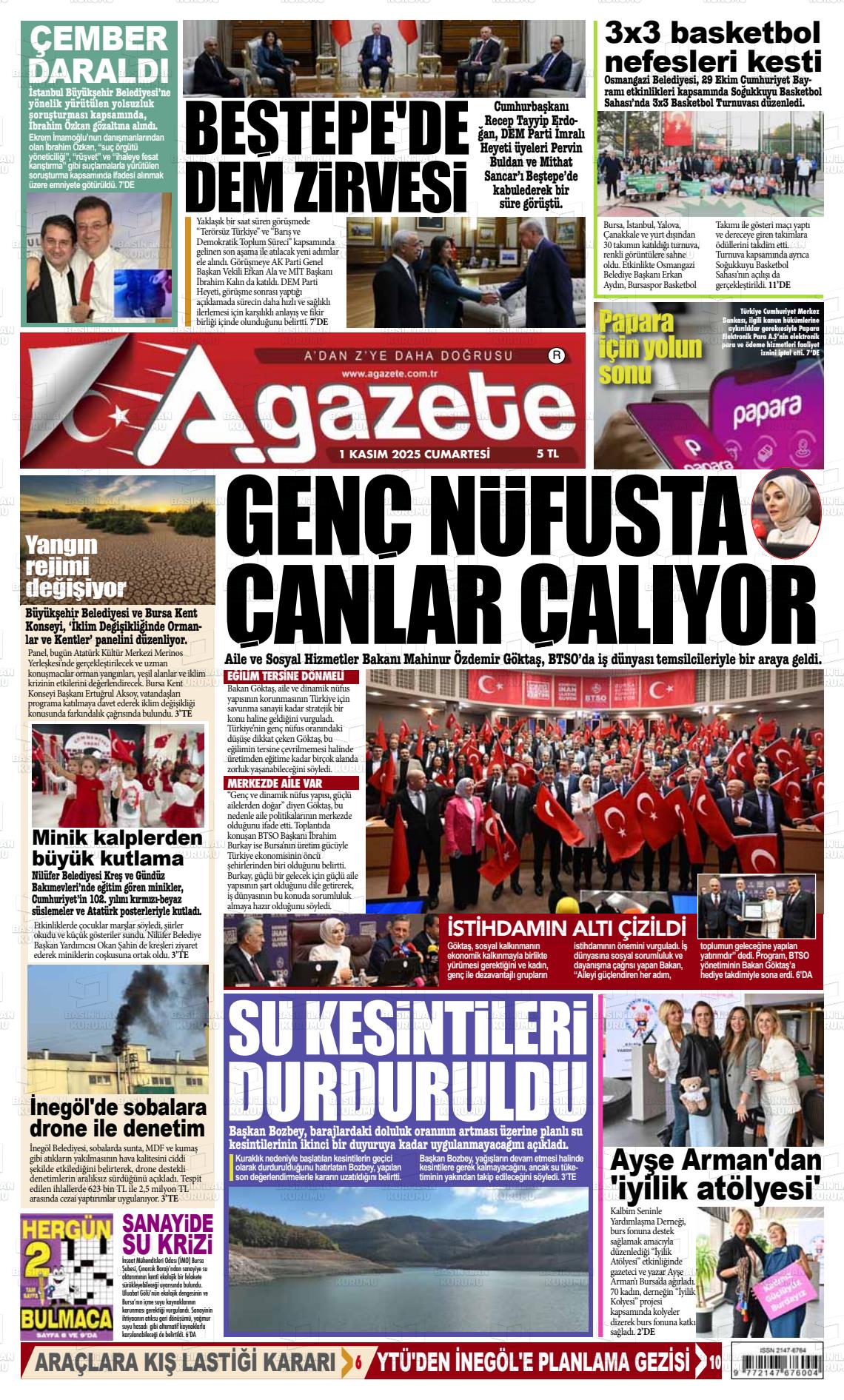 Bursa Yerel Gazeteleri 01 Kasım 2025, Cumartesi Günü Manşeti