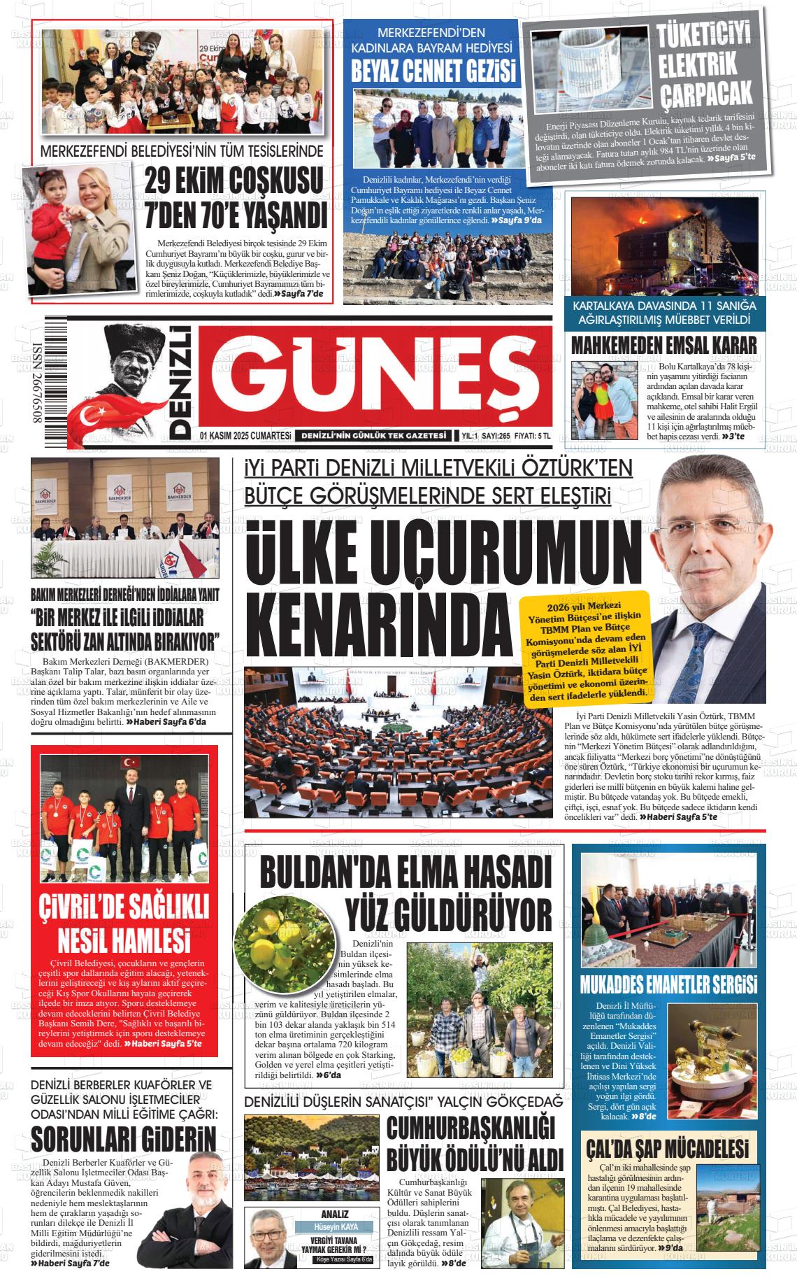 Denİzlİ Yerel Gazeteleri 01 Kasım 2025, Cumartesi Günü Manşeti