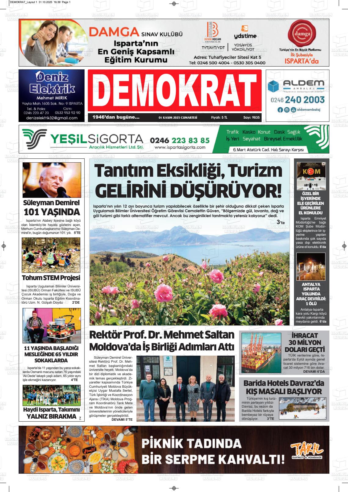 Isparta Yerel Gazeteleri 01 Kasım 2025, Cumartesi Günü Manşeti