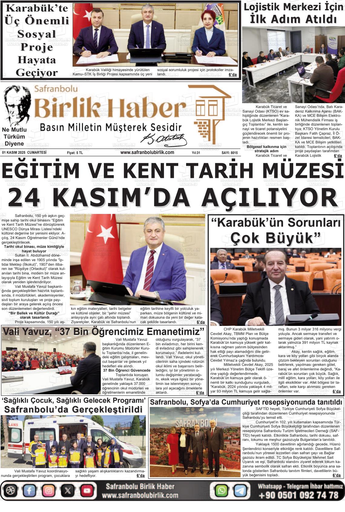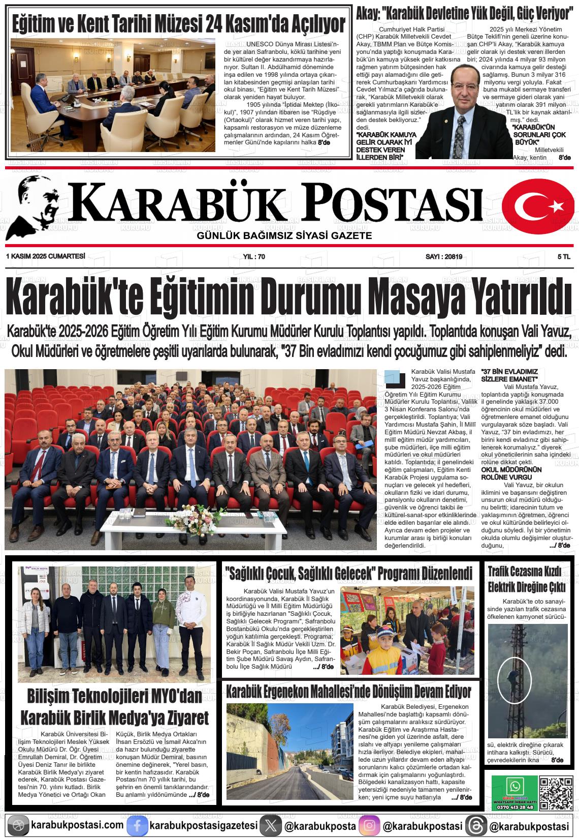 Karabük Yerel Gazeteleri 02 Kasım 2025, Pazar Günü Manşeti