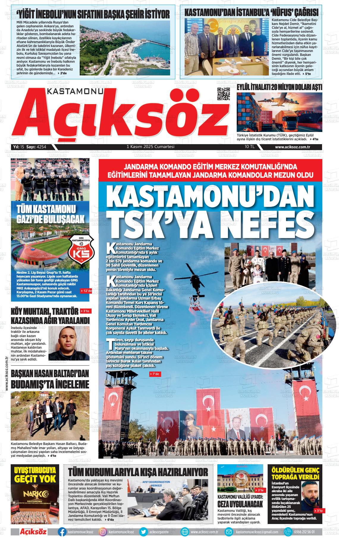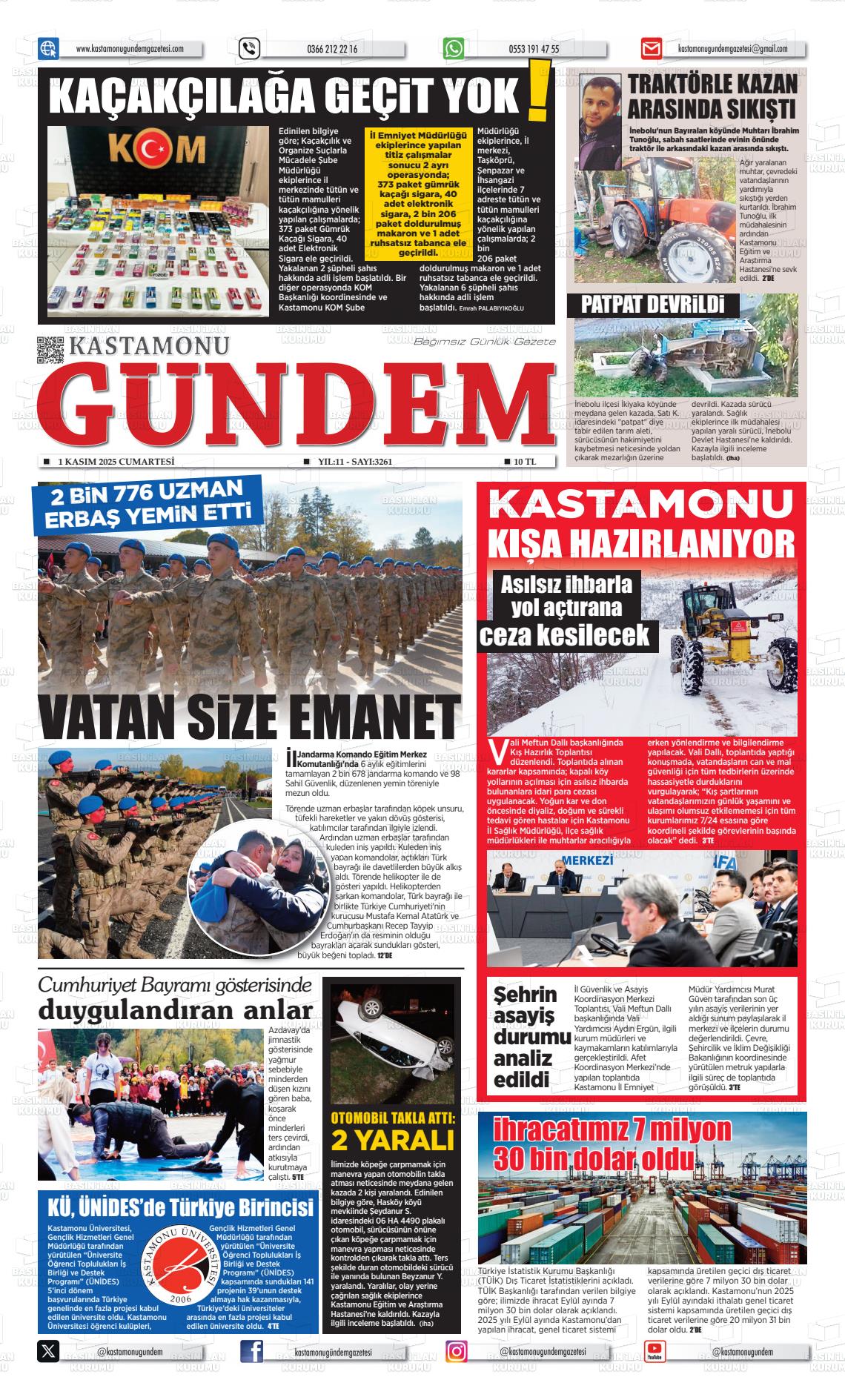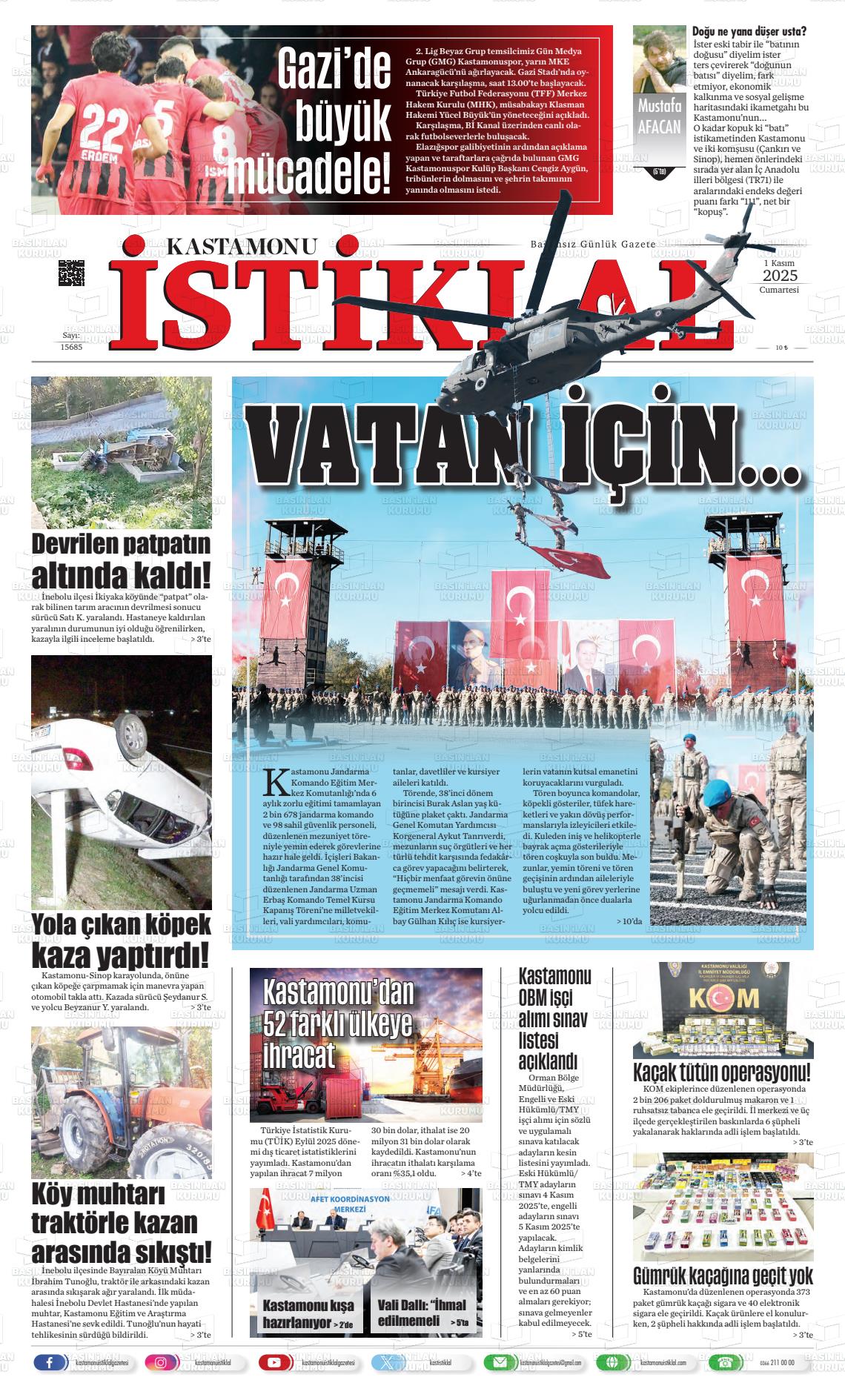 Kastamonu Yerel Gazeteleri 01 Kasım 2025, Cumartesi Günü Manşeti