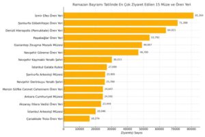 Kültür ve Turizm Bakanlığının verilerine göre, 29 Mart – 6 Nisan tarihlerini kapsayan Ramazan Bayramı tatili süresince İzmir Efes Ören Yeri 81 bin 264 kişiyle en fazla ziyaret edilen nokta oldu. Onu 71 bin 388 ziyaretçiyle Göbeklitepe, 64 bin 21 ziyaretçiyle Hierapolis (Pamukkale) Ören Yeri takip etti.