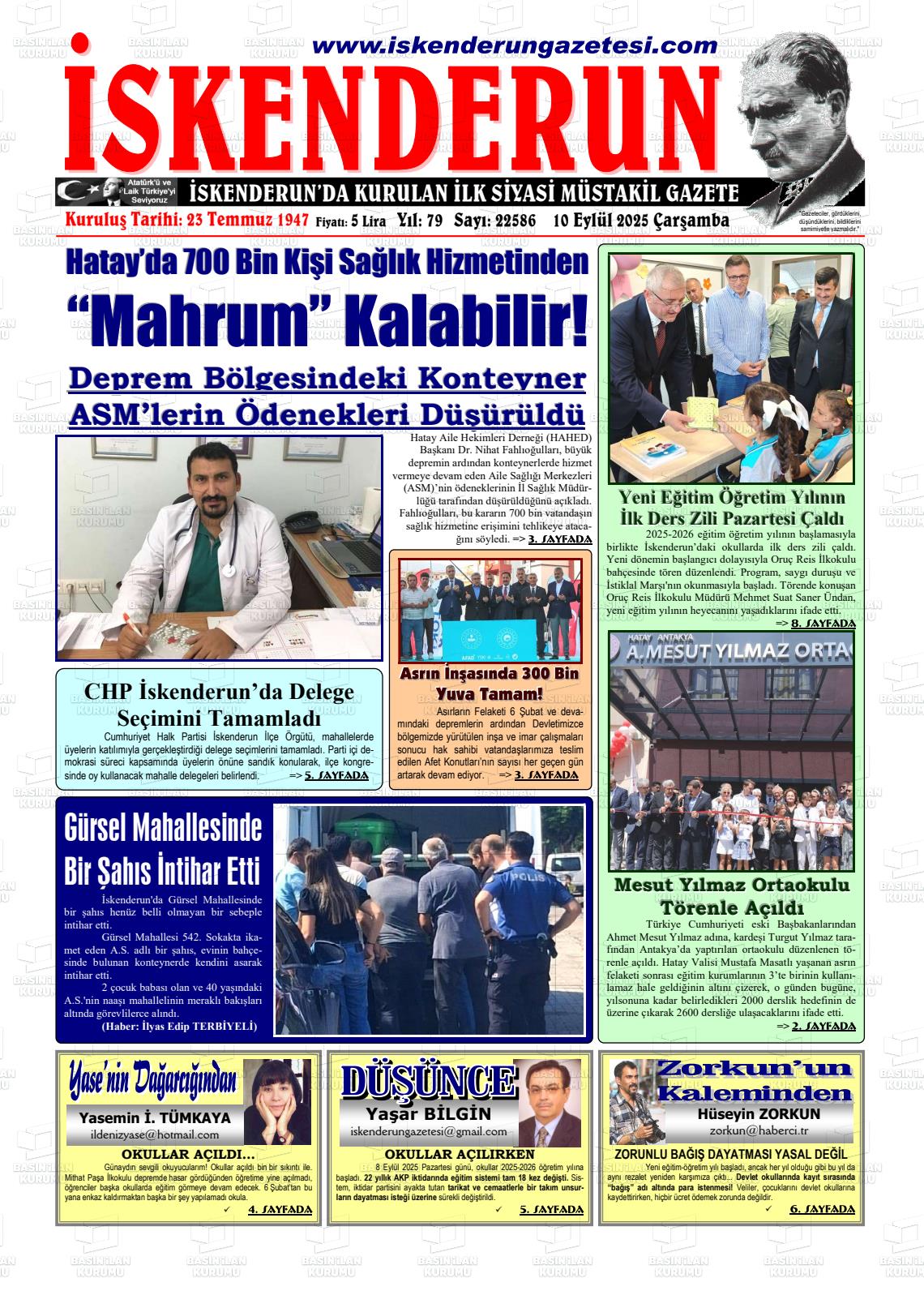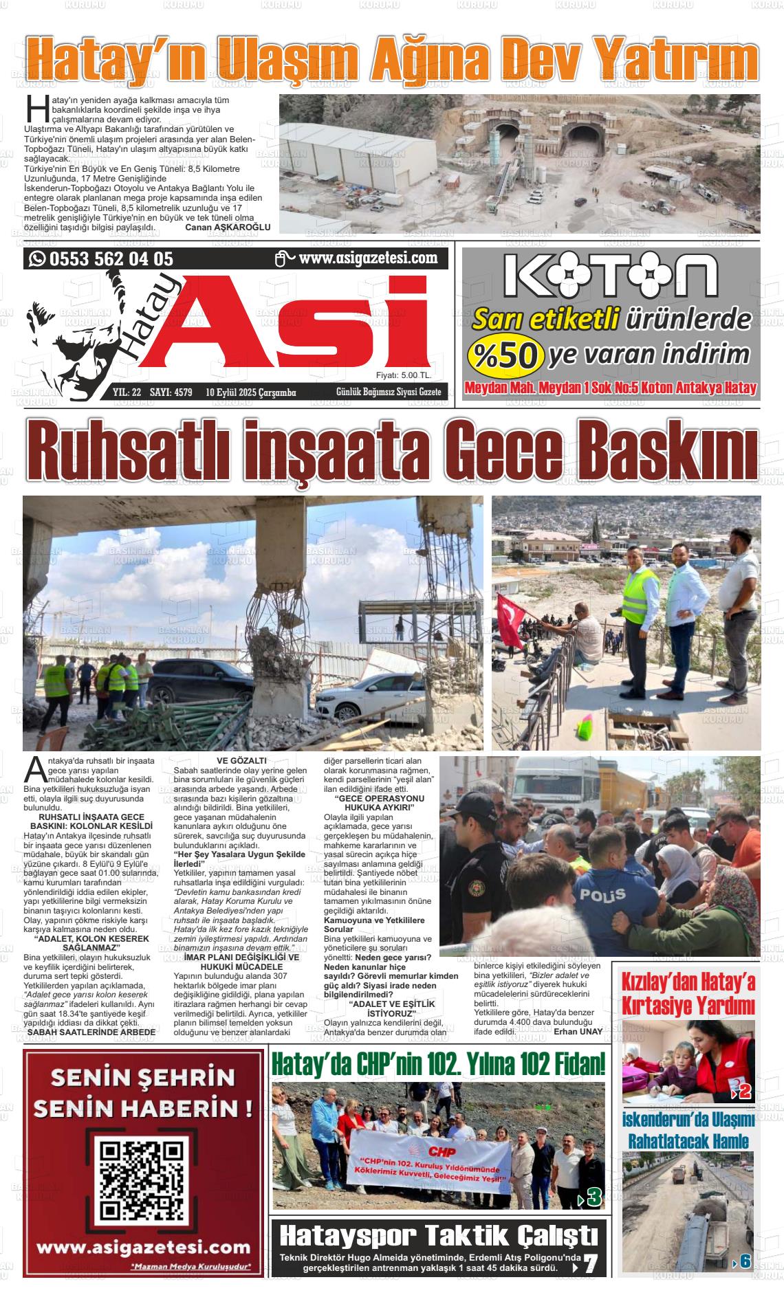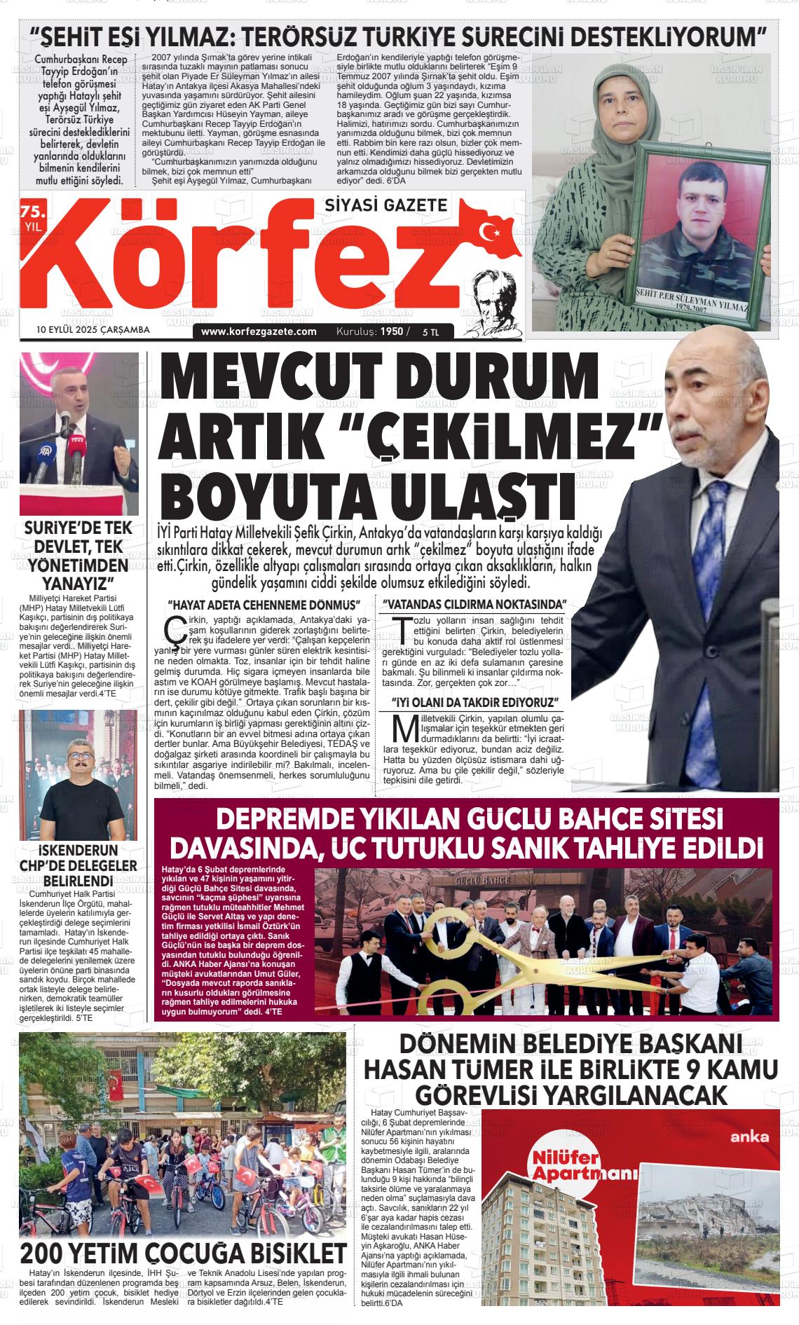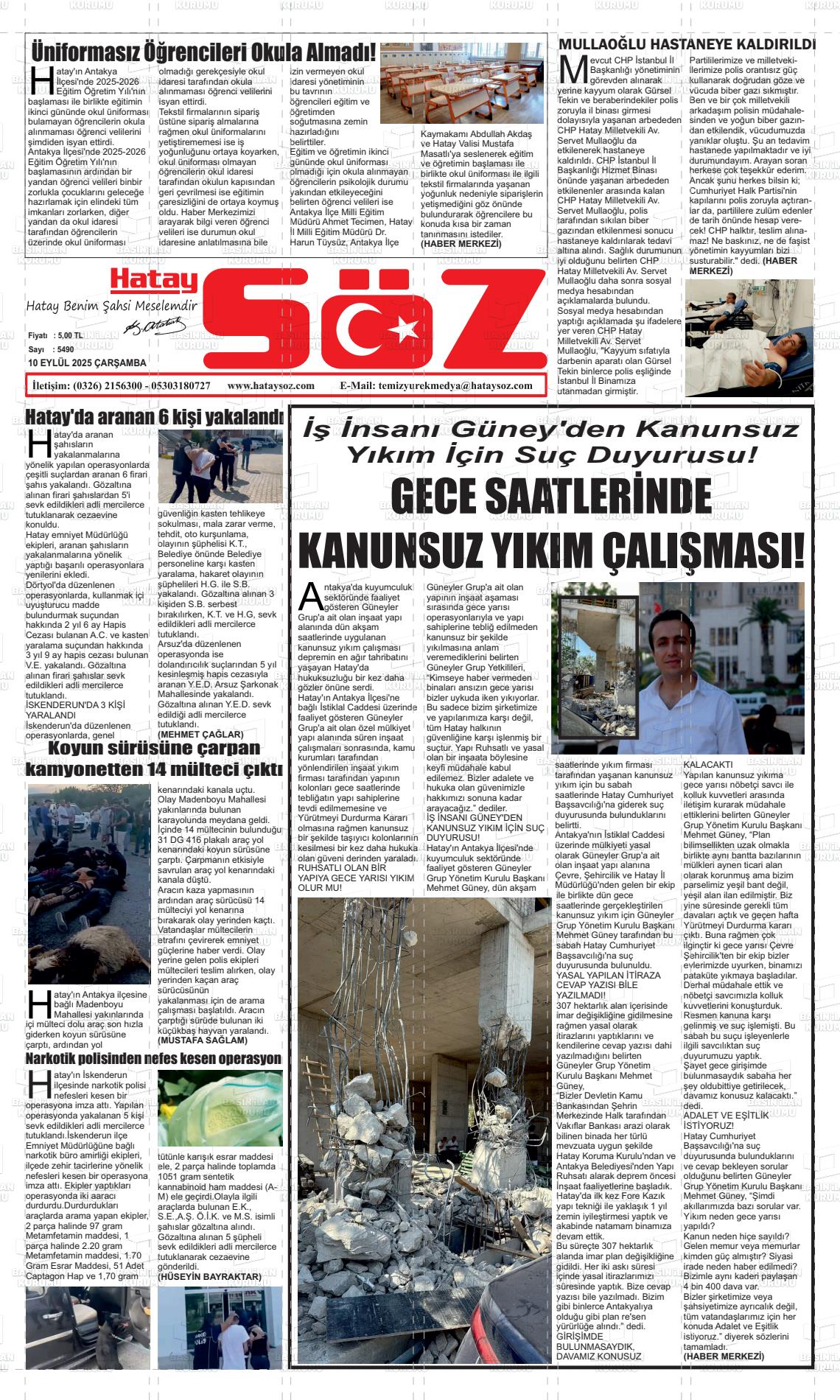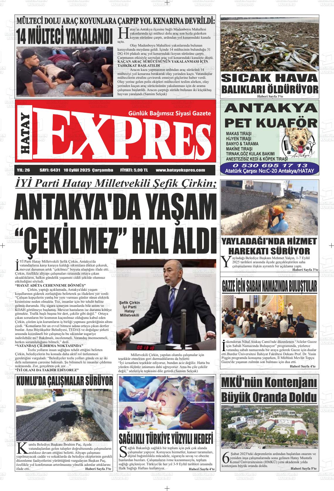 Hatay Yerel Gazeteleri 17 Aralık 2025, Çarşamba Günü Manşeti