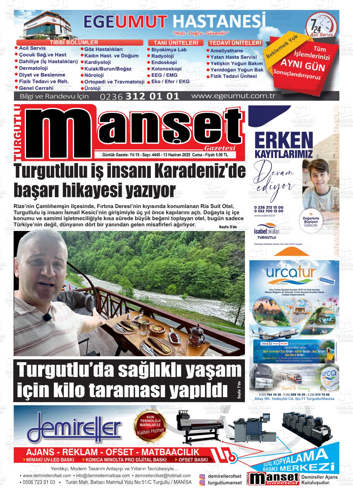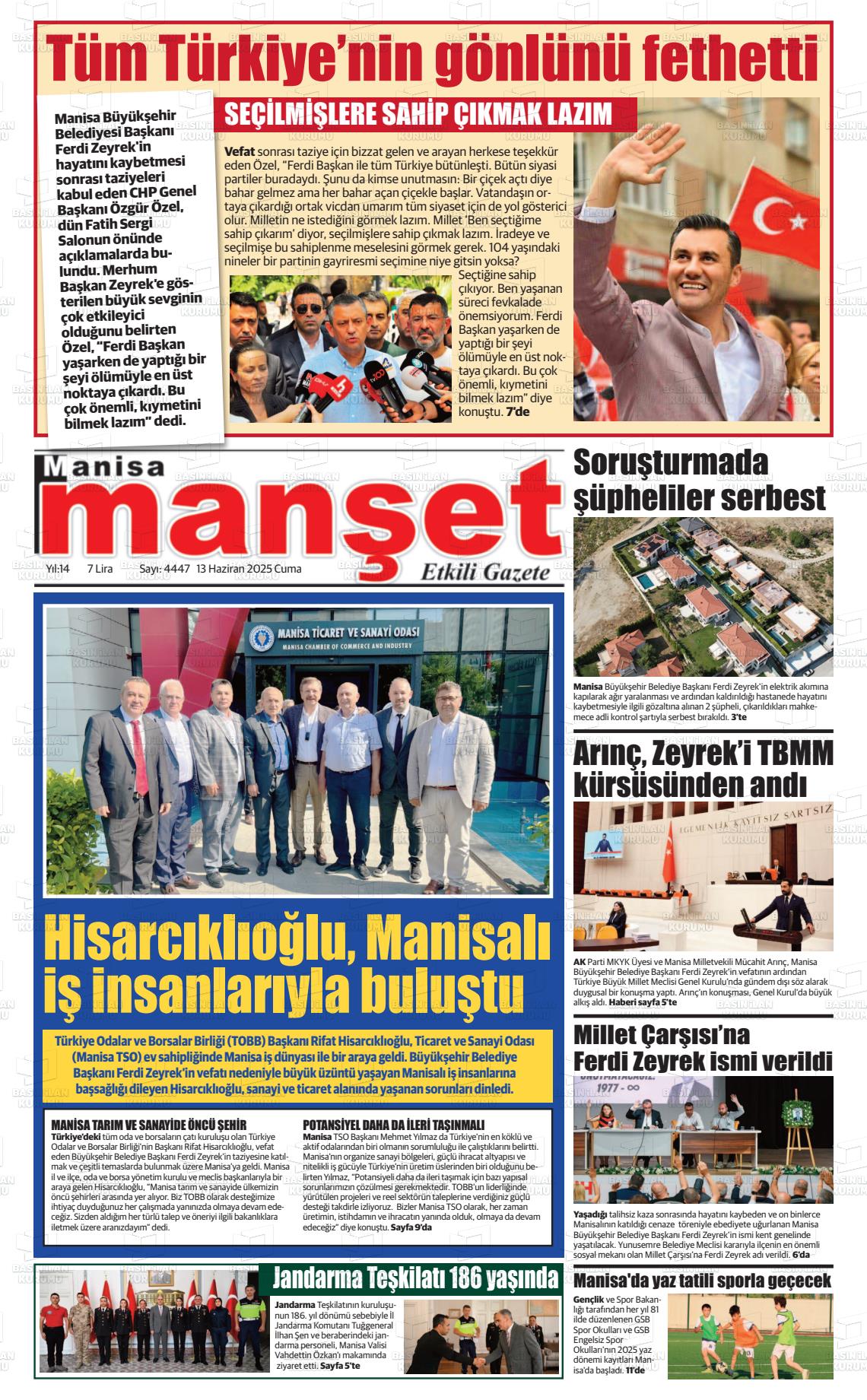 Manİsa Yerel Gazeteleri 17 Aralık 2025, Çarşamba Günü Manşeti