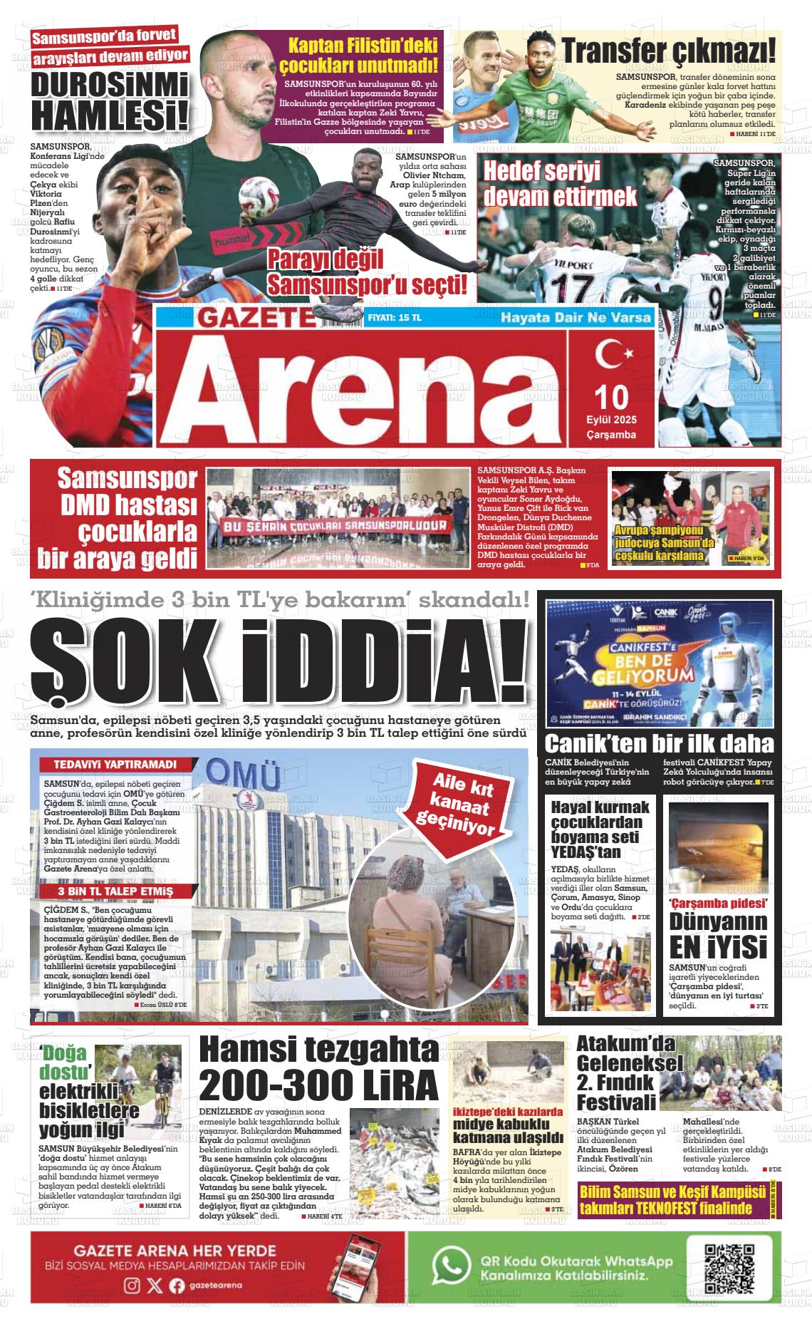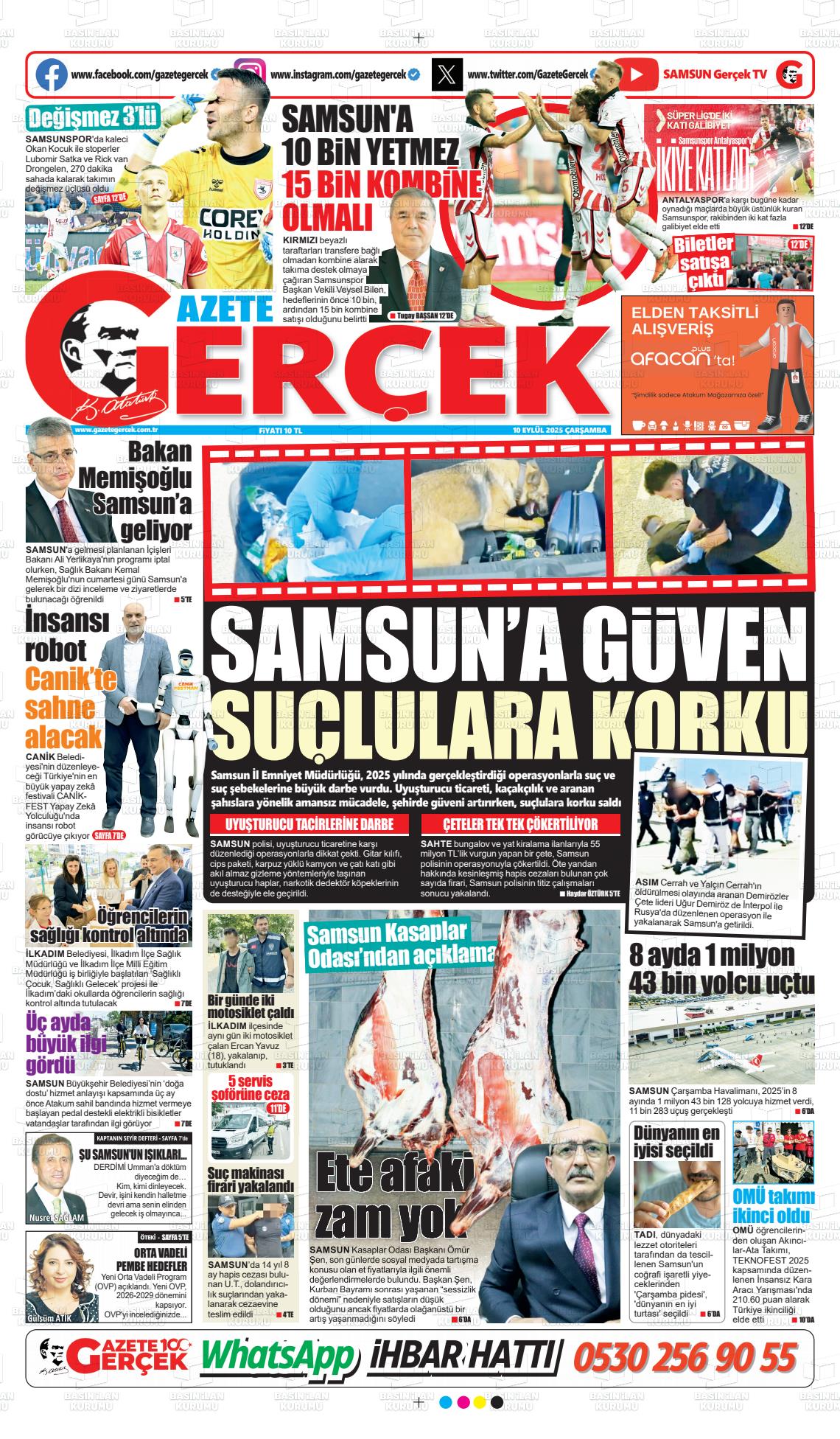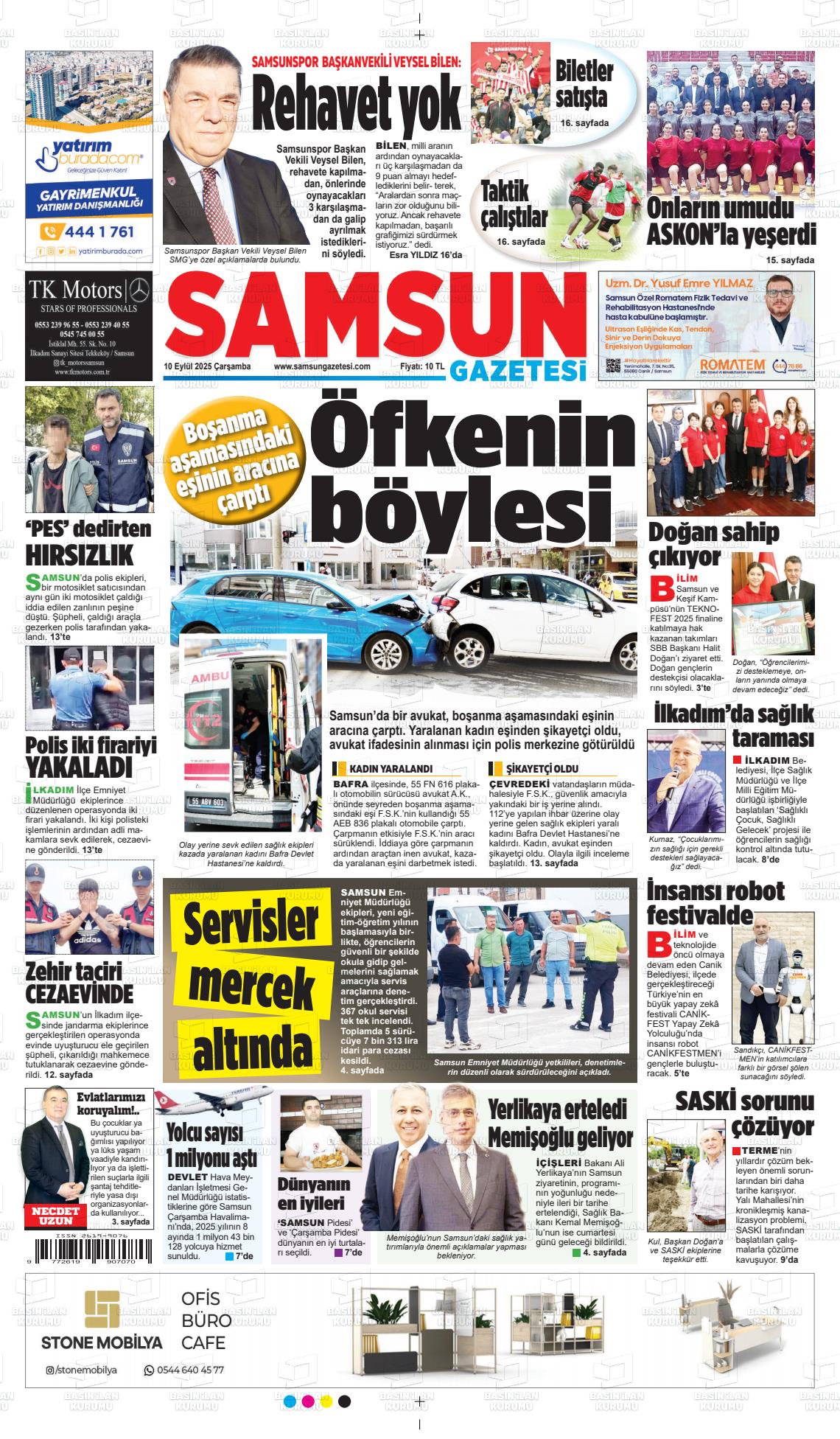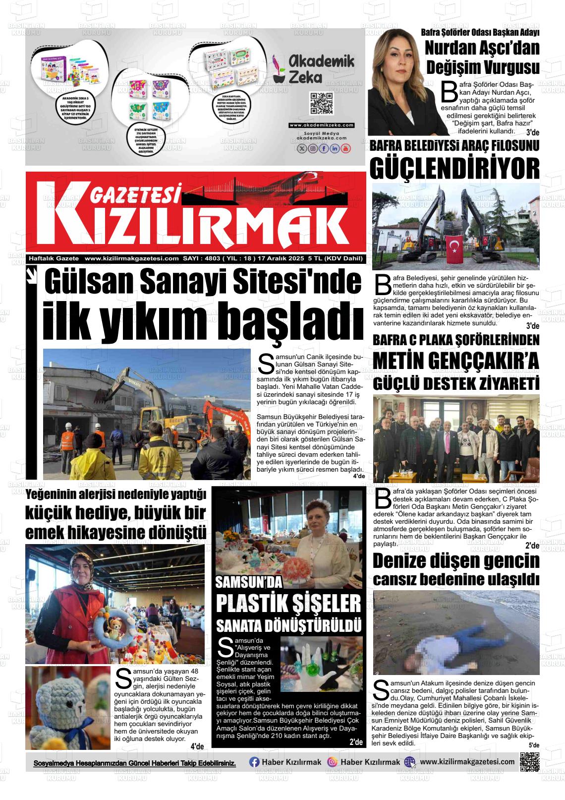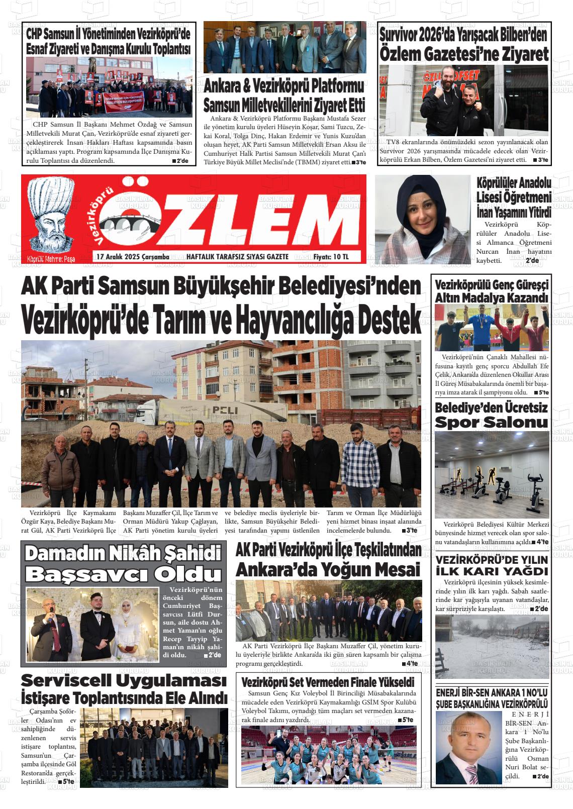 Samsun Yerel Gazeteleri 17 Aralık 2025, Çarşamba Günü Manşeti