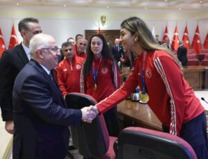 Final maçın son saniyesinde sahaya koşarak yenilgisiz şampiyon olan ablalarının sevincine ortak olan B takımı sporcuları, birbirlerini tebrik etti. Orta yuvarlakta bir araya gelen Kepez’in 2 takımı, birbirlerine sarılarak ‘şampiyon’ diyerek coşkularını ifade etti. A takımını tribüne çağıran seyirciler, üçlük çektirdi.